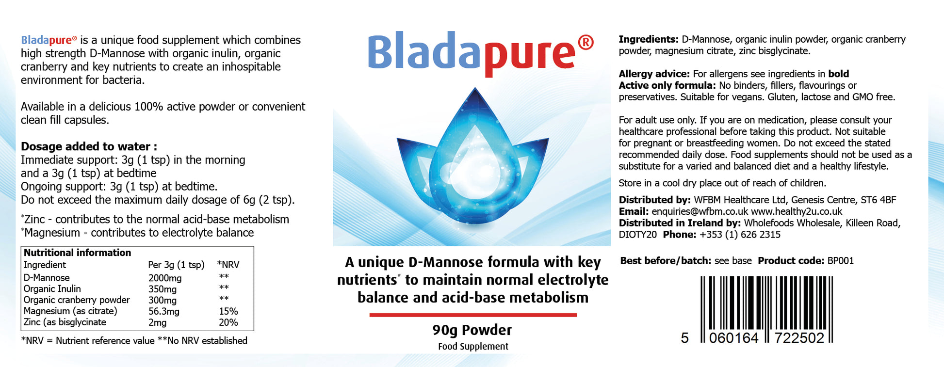 - Microfine D-Mannose (2000mg), Organic Cranberry powder, Prebiotic Inulin, Magnesium, Zinc